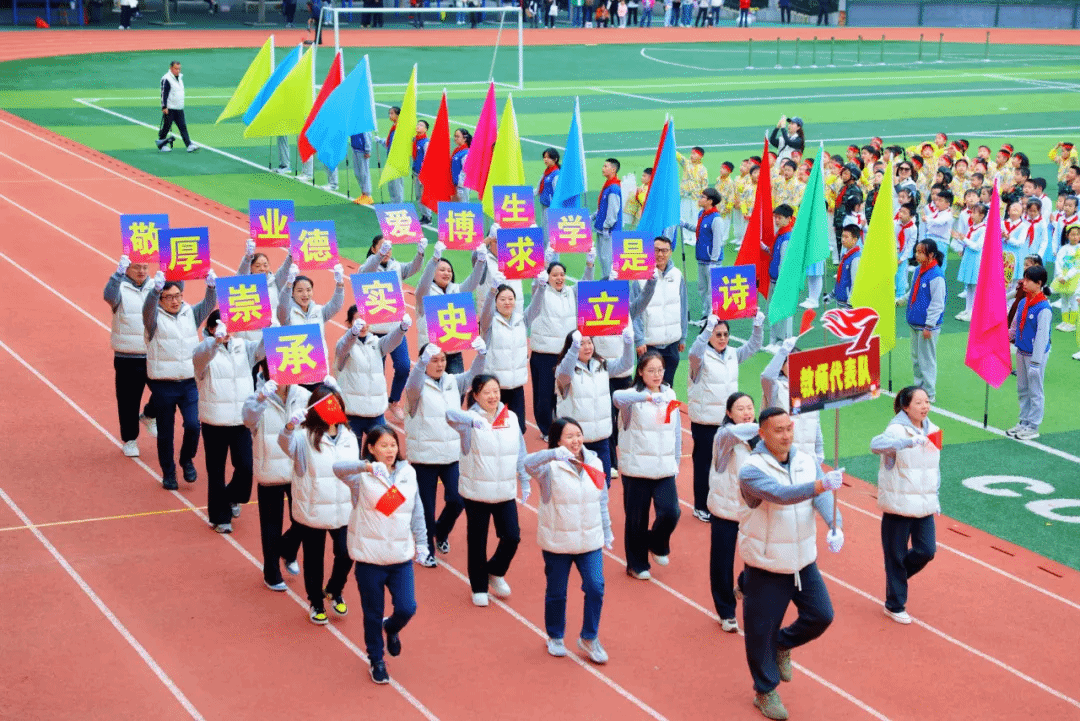 每个方阵在主席台前献上了独具匠心的表演,创意编排与嘹亮口号赢得了阵阵喝彩。附小师生以饱满的热情、灵动的姿态与昂扬的自信,展现出对民族文化的传承、红色基因的赓续以及对学校精神的深切认同,生动演绎了新时代少年的活力与集体的凝聚力。